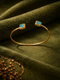 Handcrafted with meticulous attention to detail, this bracelet combines lustrous gold plating with striking turquoise stones. Each piece showcases the artisan's expertise, featuring genuine turquoise elements set into a durable gold-plated base. The warm metallic finish complements the stone's natural blue-green hues, creating an elegant accessory suitable for both everyday wear and special occasions. Perfect for those who appreciate authentic craftsmanship and timeless gemstone jewelry.