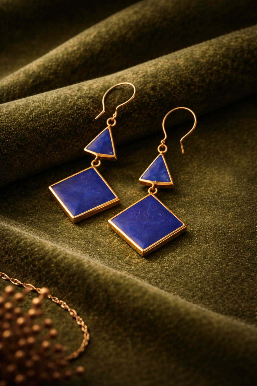 | Name | Lapis Lazuli Geometric Bronze Dangle Earrings |